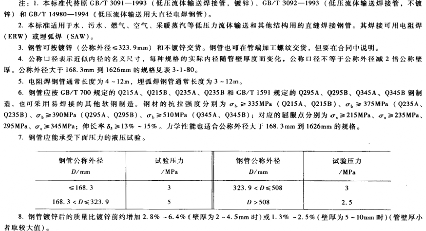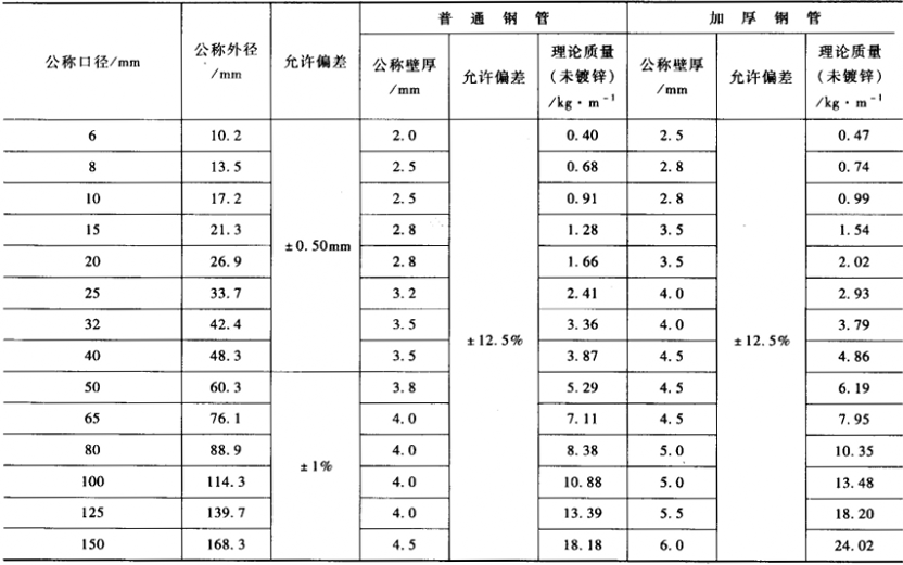 摘自《GB/T 3091-2001 低压流体输送用焊接钢管》