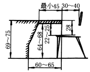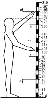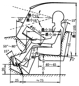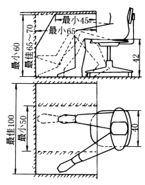 80——操纵机构布置的高度,手可达到区的下限 50——操作的最低高度(坐着) 43——男性坐位高度 40——女性坐位高度 30——绳梯最佳级高 |