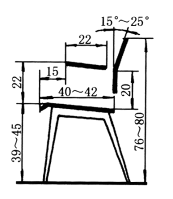 坐位高度: 男性41~45 女性39~40 坐位宽度:40 椅背宽度:35~40 |