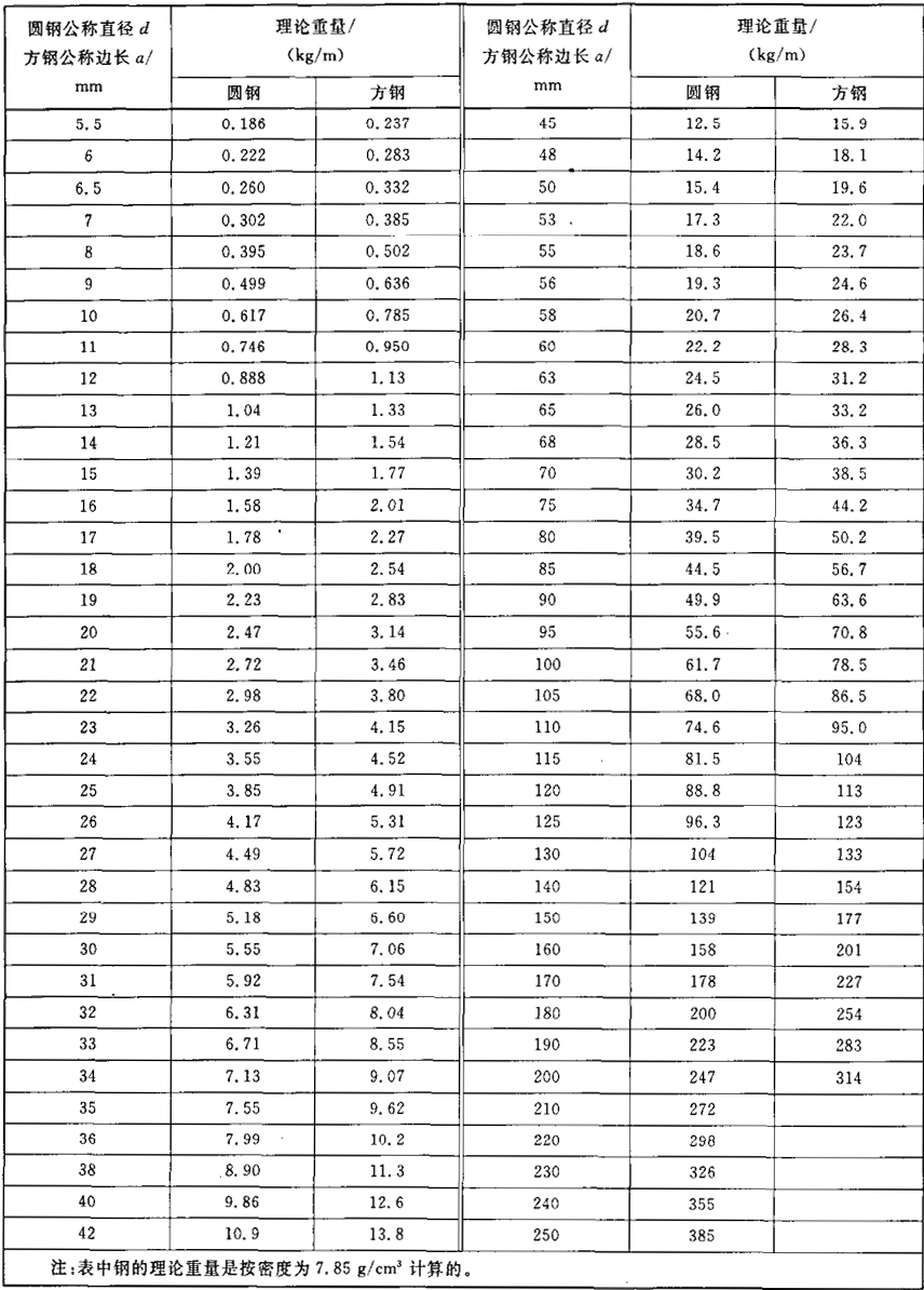 摘自《GB/T 702-2004 热轧圆钢和方钢尺寸、外形、重量及允许偏差》