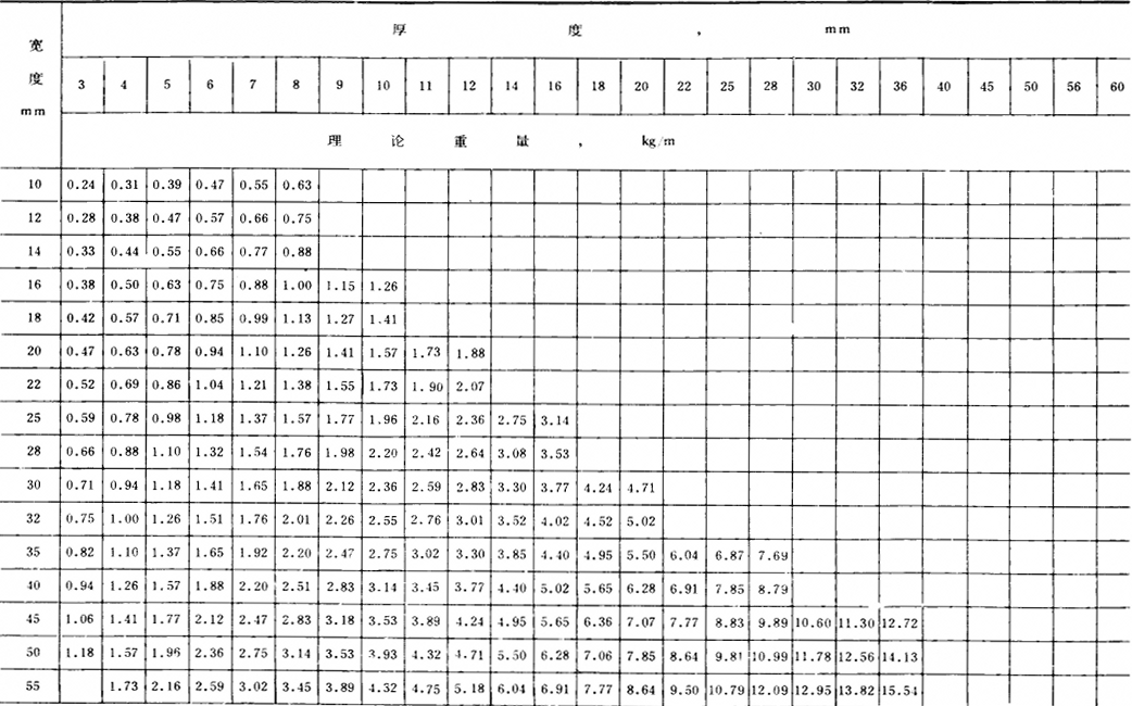 摘自《GB 704-1988 热轧扁钢尺寸、外形、重量及允许偏差》