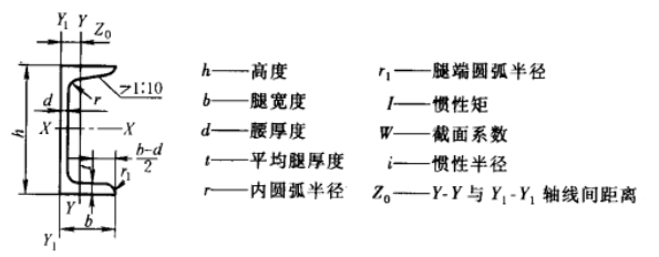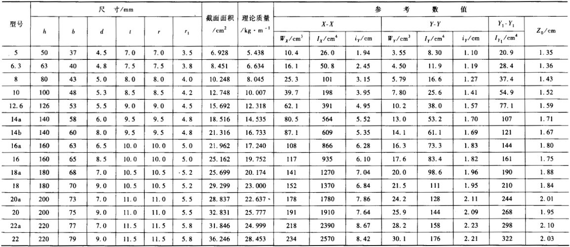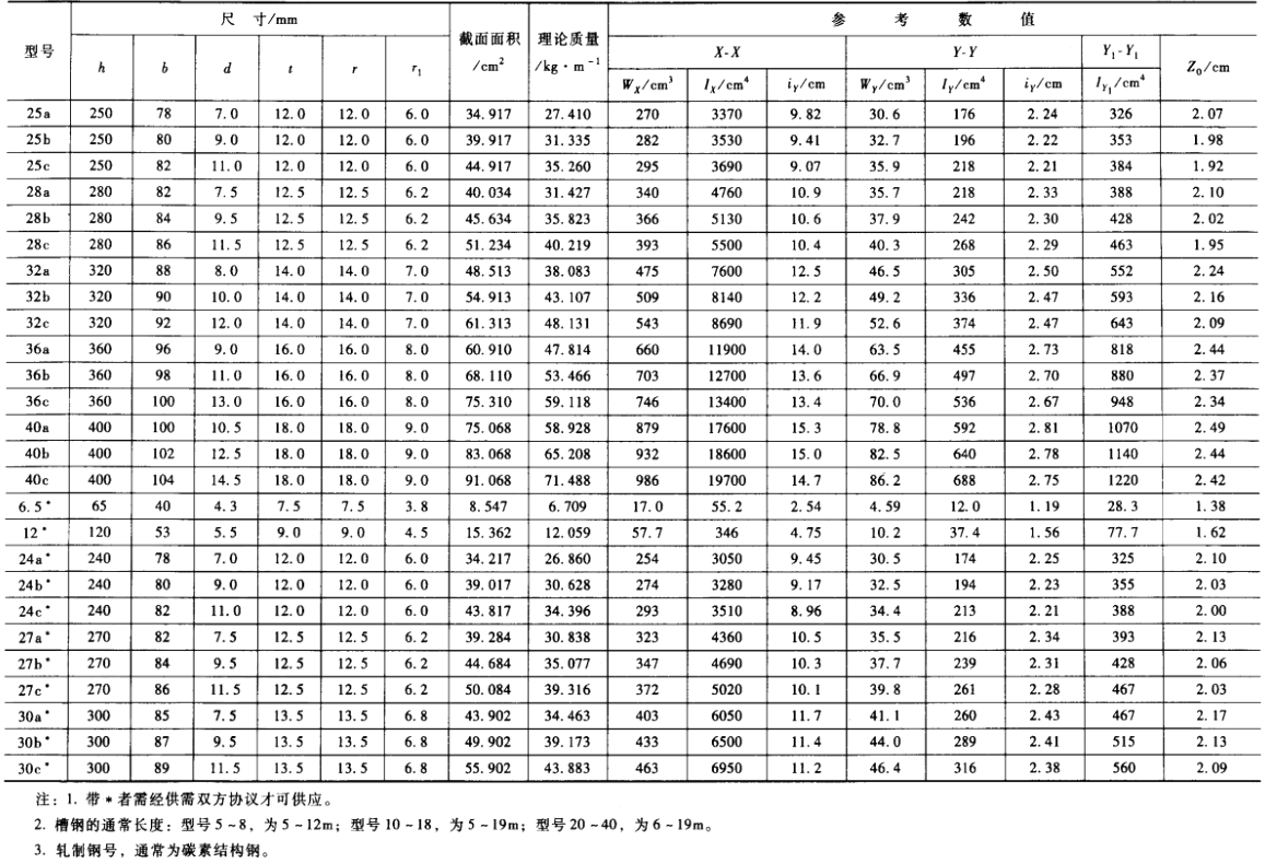 摘自《GB/T 707-1988 热轧槽钢尺寸、外形、重量及允许偏差》